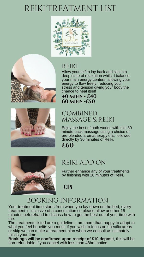 During a Reiki treatment, your body is put into a deep state of relaxation and as Reiki gently flows through you, your body is charged with positive energy aiding the negative blockages to be released.